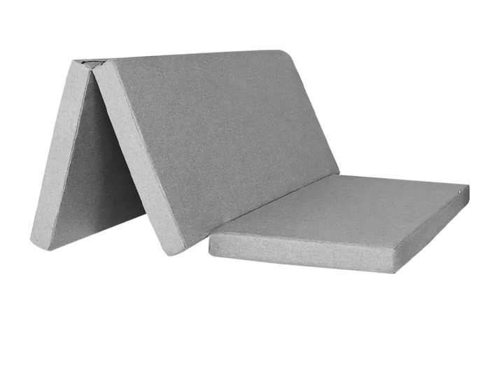Wir haben diese Option kompakt gestaltet, sodass sie im zusammengeklappten Zustand nicht viel Platz einnimmt, ohne dass der Komfort der Matratze beim Schlafen beeinträchtigt wird. Es ist durch zwei Falten verbunden, sodass es wie eine Ziehharmonika gefaltet werden kann. Der 8 cm dicke Schaumstoff hat eine feste Dichte von 25 kg/m³ und sorgt so für optimale Erholung.