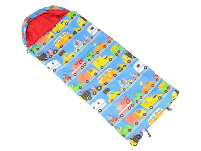 Findet Ihr Kind Autos, LKWs und Wohnmobile toll? Dann wird Ihnen dieser Schlafsack bestimmt gefallen! Dieser tolle Kinderschlafsack ist blau und hat einen schönen Aufdruck mit vielen verschiedenen Fahrzeugen.