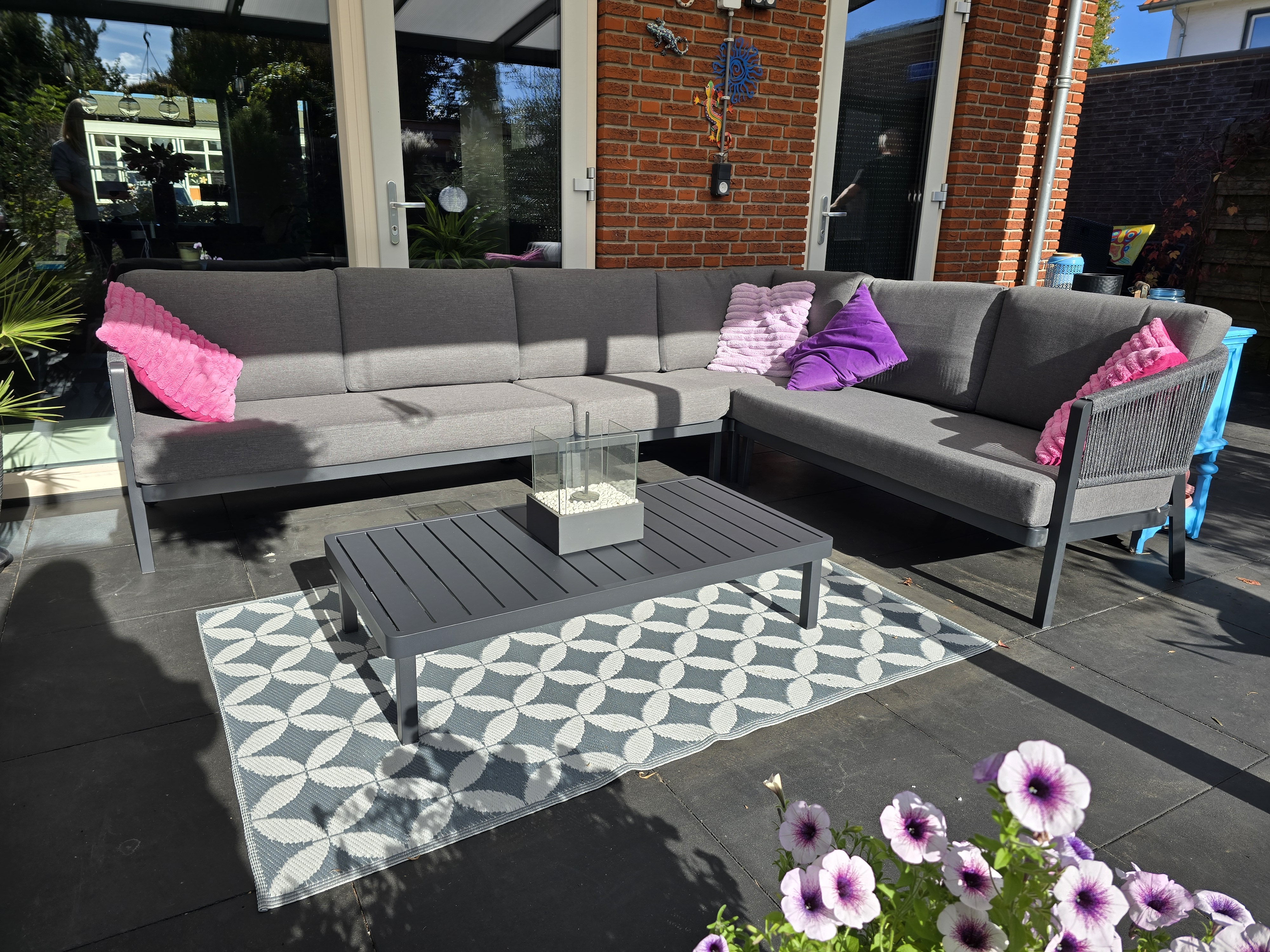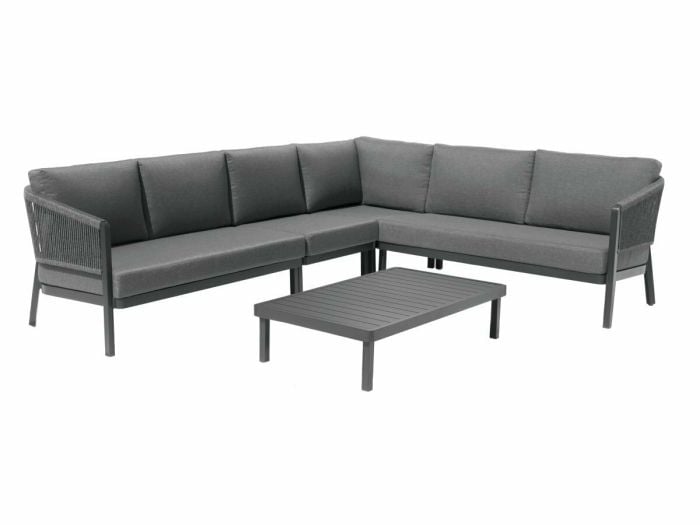 Bringen Sie Stil und Komfort in Ihren Außenbereich mit dem wunderschönen asymmetrischen Kettler Alba Arezzo Corner Loungeset.