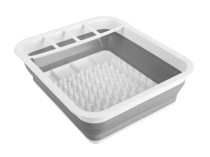 Diese Schüssel ist ideal zum Trocknen von Besteck und Geschirr nach dem Spülen, eignet sich aber ebenso perfekt für Camping, Wohnmobile, Reisen oder den Einsatz zu Hause. Das spezielle Fach für stehendes Besteck sorgt für eine effiziente Wasserableitung, während die Bodenstopper die Teller während des Trocknens sicher an ihrem Platz halten.