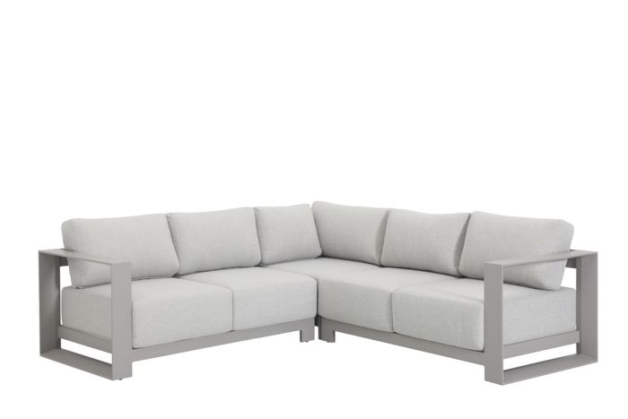 Die Serie Levanto ist bekannt für ihren hohen Sitzkomfort und die modernen, pflegeleichten Materialien, die für die Möbel verwendet werden. Das Gestell ist aus leichtem Aluminium gefertigt und mit einer schützenden Pulverbeschichtung versehen. Die extradicken, bequemen Kissen sind aus weichem Polyestergewebe gefertigt und mit einer wasserabweisenden Beschichtung versehen. So können Sie Regentropfen einfach von den Kissen abklopfen. Bei diesem speziellen Teil der Levanto-Serie handelt es sich um das dreiteilige Ecksofa, das aus einem Eckelement und zwei Sofateilen besteht. Sie können das Ecksofa z. B. mit einem Loungetisch oder einem mittelhohen Lounge-Esstisch ergänzen, so dass Sie sowohl lümmeln als auch speisen können. Die Sitzhöhe des Ecksofas Levanto ist nämlich perfekt auf beide Zwecke abgestimmt. Vervollständigen Sie Ihre Garnitur mit einer Sportbank und einem Beistelltisch und Sie sind bereit für den Sommer! Die Maße des Ecksofas Levanto sind 231,5 x 231,5 x H65 cm, die Sitzhöhe beträgt 42 cm.