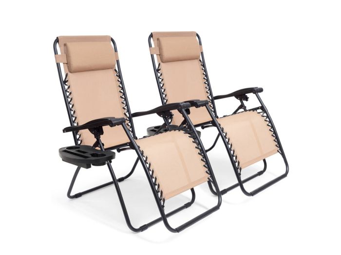 Mit diesem Set klappbarer Liegestühle von LifeGoods können Sie gemeinsam entspannen in Ihrem Garten, auf Ihrer Terrasse oder auf dem Campingplatz. Die Rückenlehne und Fußstütze sind von 30° bis 90° verstellbar, sodass Sie immer bequem sitzen oder liegen können. Durch den praktischen Seitentisch mit Getränke- und Telefonhalter haben Sie Ihr Getränk und Ihre Musik immer zur Hand. Die Stühle sind leichtgewichtig, leicht zu bewegen und klappbar. Nehmen Sie sie mit ins Auto, klappen Sie sie auf dem Campingplatz aus, befestigen Sie das Kopfkissen und genießen Sie!