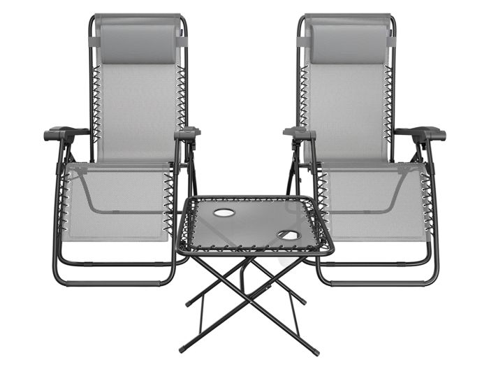 Entspannen Sie sich stilvoll mit diesem Set aus zwei Klappliegen von LifeGoods, komplett mit praktischem Beistelltisch! Perfekt für den Garten, auf dem Balkon oder zum Camping. Diese Gartenstühle sind verstellbar, wobei die Rückenlehne und die Fußstütze von 30° bis 90° verstellbar sind, um ultimativen Komfort als Liege zu bieten.