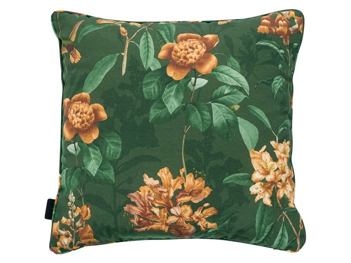 Das Madison Lua green 50 x 50 ist ein quadratisches grünes Zierkissen mit Blumenmuster.