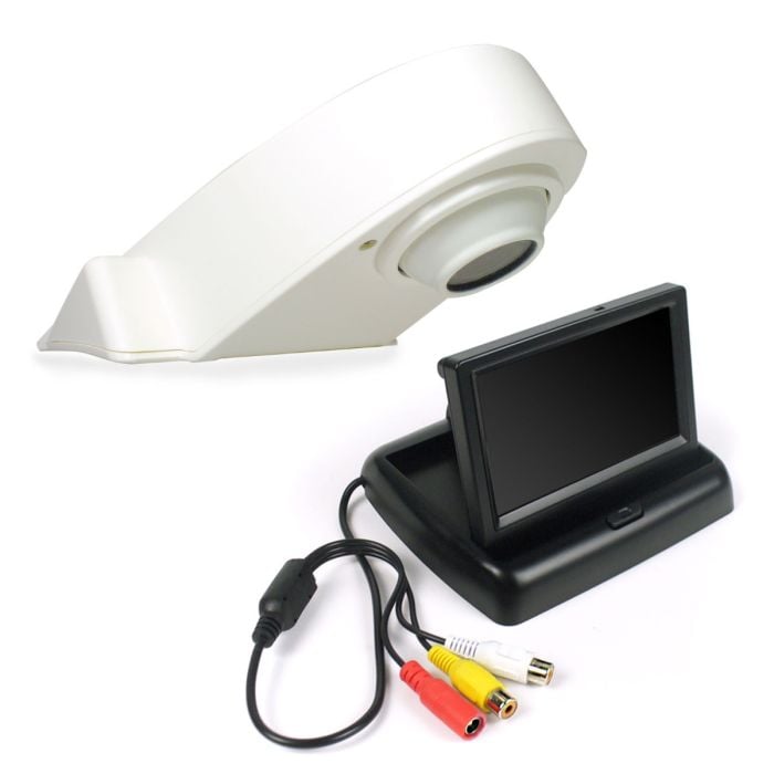 Set: Rückfahrkamera Transporter weiß + Klapp-Monitor 10,9 cm (4,3 Zoll) für Crafter Sprinter Viano Ducato Vans