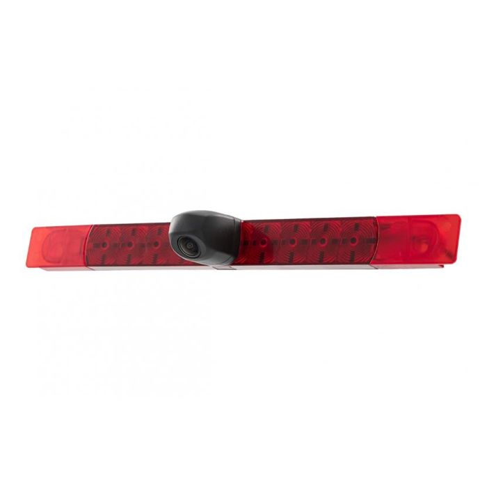 Die Wölbung der Dachkante oberhalb der Hecktüren erschwert die Installation und schränkt damit den rückwertigen Sichtbereich stark ein. Durch die Integration in das Bremsleuchtenglas und den damit gewonnen Abstand wird eine deutlich bessere Sicht auf Elemente hinter dem Fahrzeug ermöglicht.
