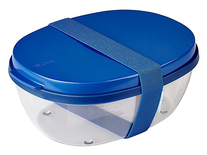 Die Salatbox Ellipse von Mepal ist perfekt für einen Salat als eigenständige Mahlzeit. Zudem ist die transparente Box mit Deckel groß genug für das Mischen und Würzen von Salaten. Das obere Fach bietet Platz für eine Scheibe Brot, Besteck und die Minibox, in der sich ein Dressing, Dip oder Gewürze mitnehmen lassen. Ideal für eine leckere und gesunde Mahlzeit unterwegs. Die Salatbox Ellipse ist nahezu unzerbrechlich, 100% BPA-frei und (ohne Gummiband) spülmaschinengeeignet. So kannst du unterwegs überall den Salat deiner Wahl genießen - gesund, nachhaltig und immer wieder auf's Neue!