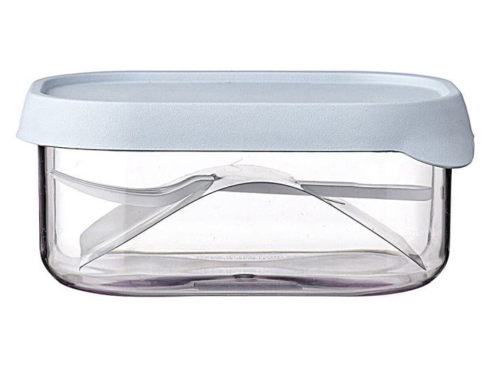 Fruchtbox Take a Break in der Farbe Nordic blue. Diese Fruchtbox Take a Break von Mepal macht das Mitnehmen von Obst und Obststückchen kinderleicht. Die transparente Fruchtbox ist groß genug für einen Apfel, eine Birne oder Banane und passt genau in die Lunchbox Take a Break midi oder die Brotdose Campus. Der blaue Deckel schließt dicht, kann aber auch leicht von Kinderhänden geöffnet werden. Die mitgelieferte kleine Fruchtgabel sorgt dafür, dass sich Obst und Fruchtstücke ganz einfach essen lassen, ohne die Hände danach waschen zu müssen. Die Fruchtbox ist bruchfest und spülmaschinengeeignet (ohne Deckel).