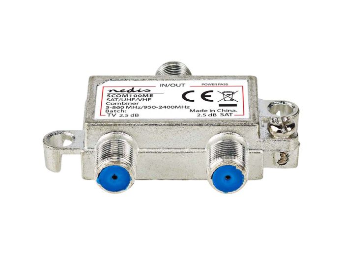 Kombinieren Sie ein Satellitensignal mit einem Kabelfernsehsignal mit diesem SAT/UHF/VHF-Combiner. Ausgestattet mit Power Pass.