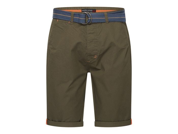 Herrenshorts von Norlund. Diese Shorts bestehen aus hochwertiger Baumwolle und Elastan. Die gelungene Materialmischung sorgt für hervorragenden Tragekomfort. Der abgebildete Gürtel ist im Lieferumfang enthalten.