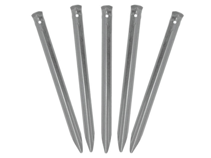 Die Heringe aus hochwertigem Stahl sind die ideale Lösung für eine sichere und stabile Befestigung Ihres Zeltes, egal ob im Sand oder im Schnee.