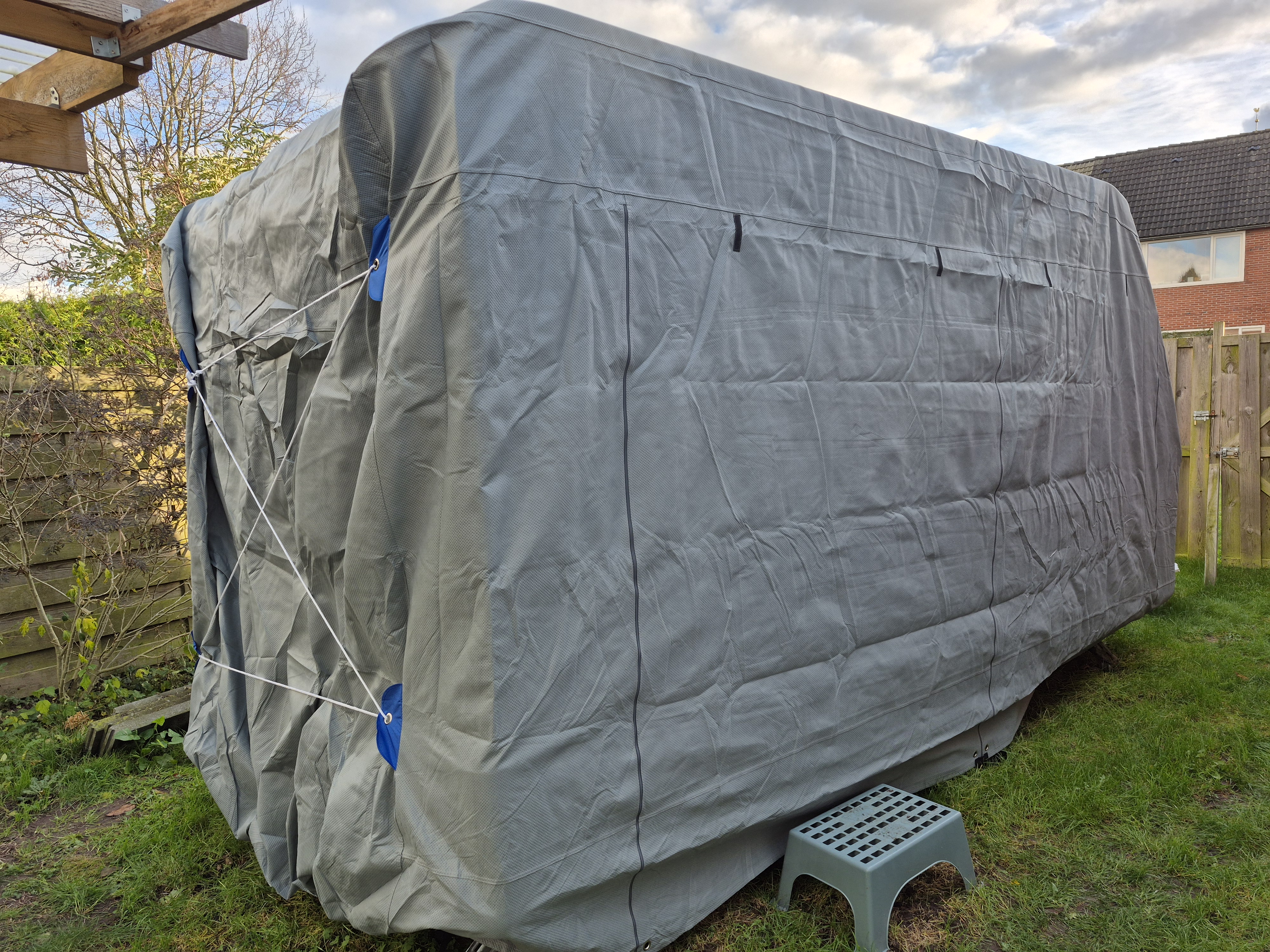 Die Obelink 427 - 518 x 235 cm Wohnwagen Schutzhülle eignet sich optimal zum Abdecken Ihres Wohnwagens im Unterstellplatz während des Winter!