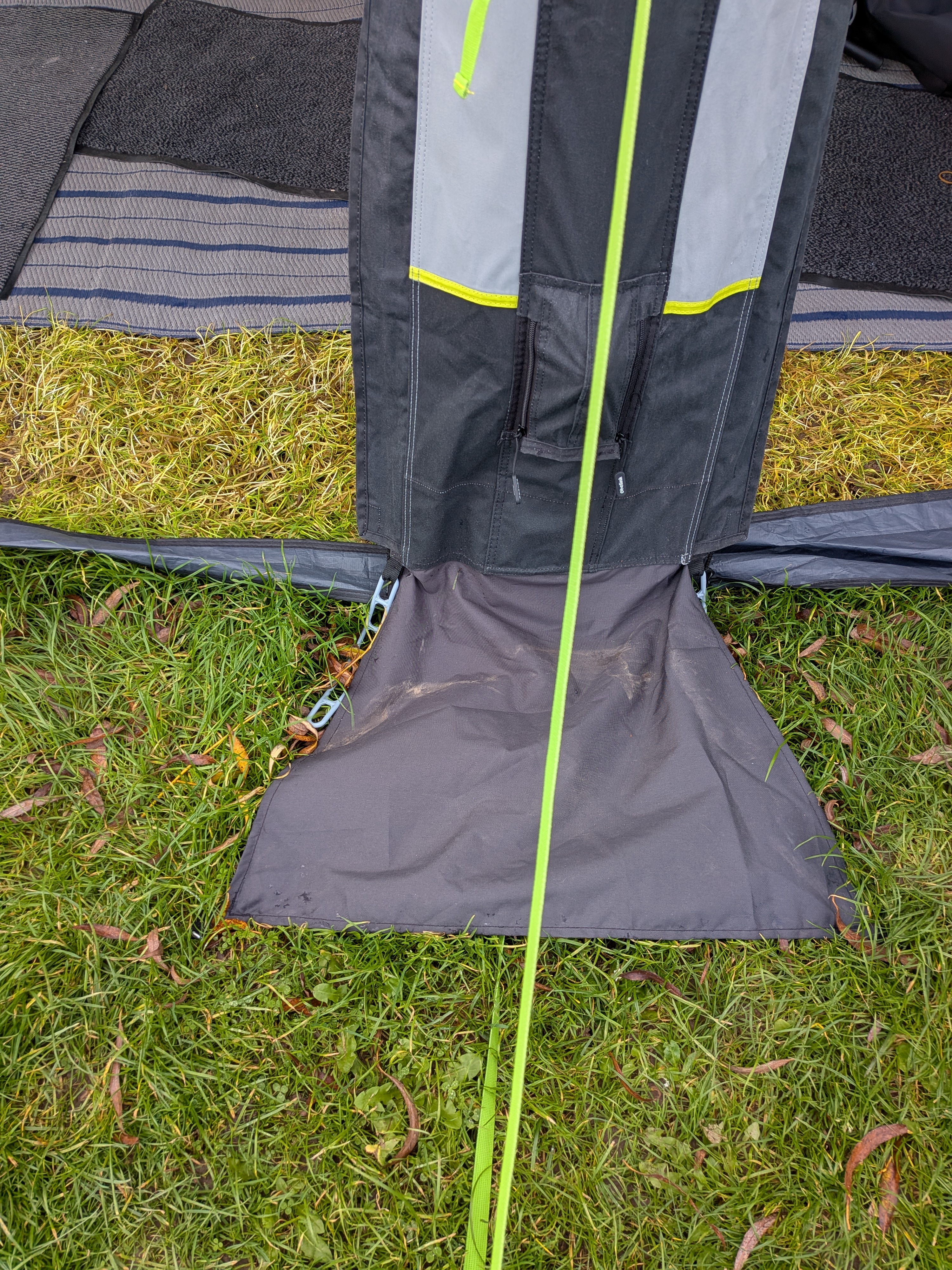 Die rechte Seitenwand, wenn man das Zelt von vorne betrachtet.