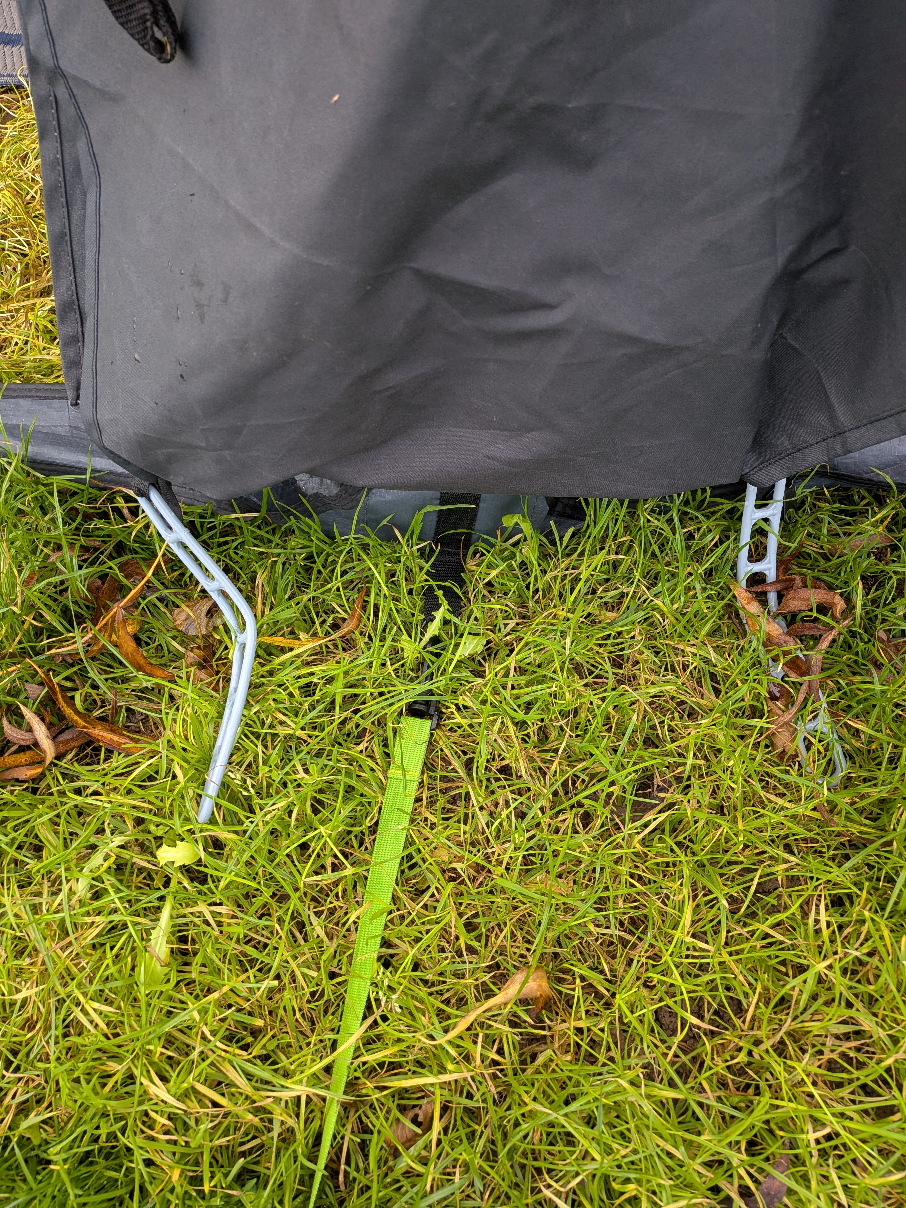 Die linke Seitenwand, wenn man das Zelt von vorne betrachtet.