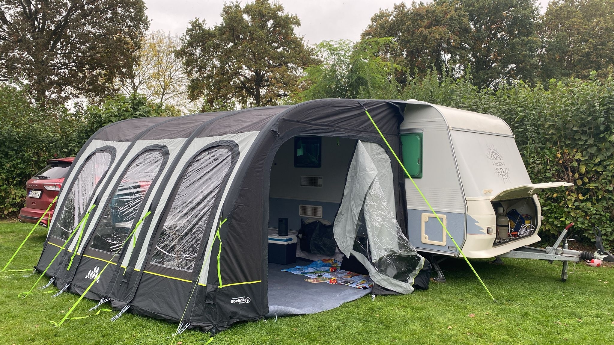 Das Obelink Ambassador 380 Easy Air Connected ist ein Luftvorzelt, sowohl für Wohnwagen als auch für Wohnmobilen geeignet.