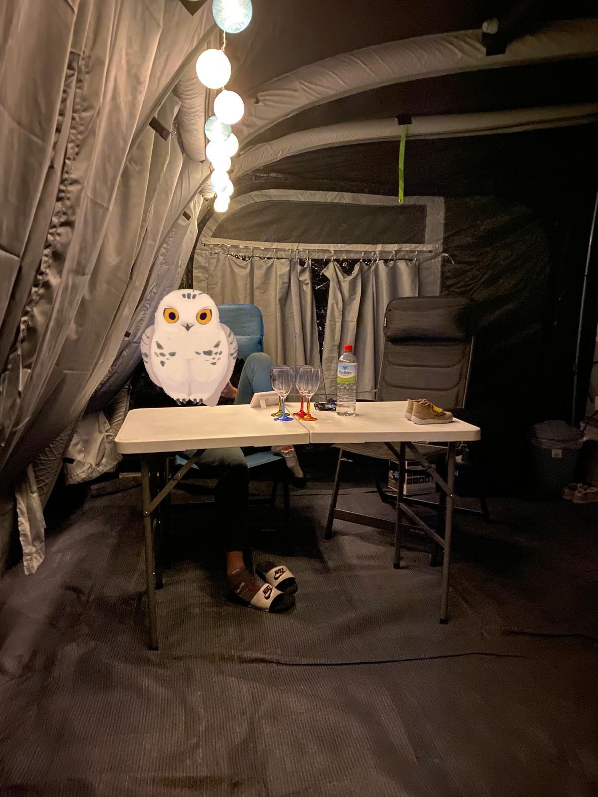 Dieses (Vor-)Zelt oder diese Markise ist mit aufblasbaren Luftschläuchen anstelle von Zeltstangen ausgestattet