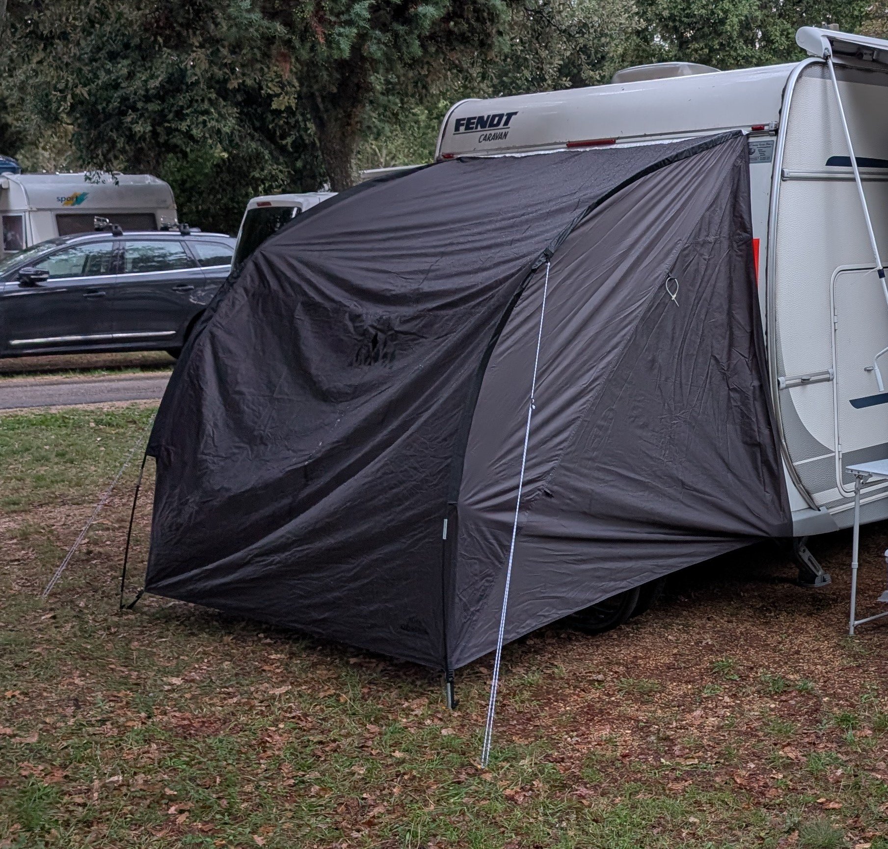 Ein freistehendes Zelt kann auch ohne Wohnmobil oder Bus an Ort und Stelle bleiben. Das ist besonders praktisch, wenn man öfters mit dem Fahrzeug losziehen will, ohne jedesmal das Zelt auf- und abbauen zu müssen.