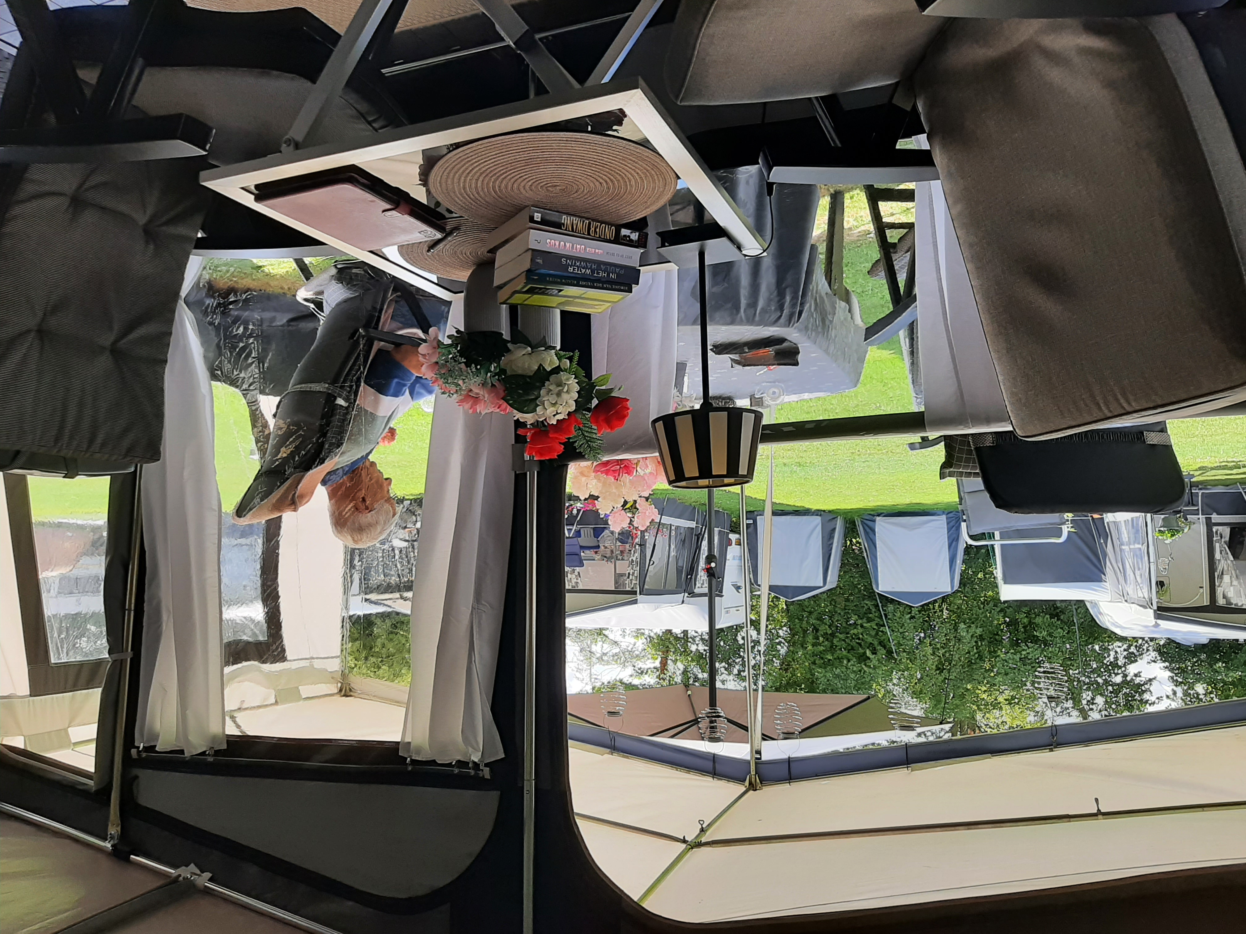 Dieses (Vor-)Zelt oder diese Markise ist mit aufblasbaren Luftschläuchen anstelle von Zeltstangen ausgestattet