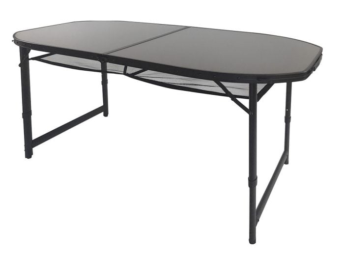 Der Obelink Cyprus 150 - Black ist ein ovaler Campingtisch mit eine wasser- und hitzebeständigen Aluminium Tischplatte.