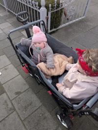 Manchmal ist ein Spaziergang für kleine Kinder zu weit, um einen schönen Tag draußen zu verbringen, können Sie diesen Duo Solar Wagen benutzen. Und selbst wenn es regnet oder die Sonne scheint, können Sie einfach hinausgehen. Dank des Solardachs dieses Wagens sitzen die Kinder trocken und vor der hellen Sohne geschützt.