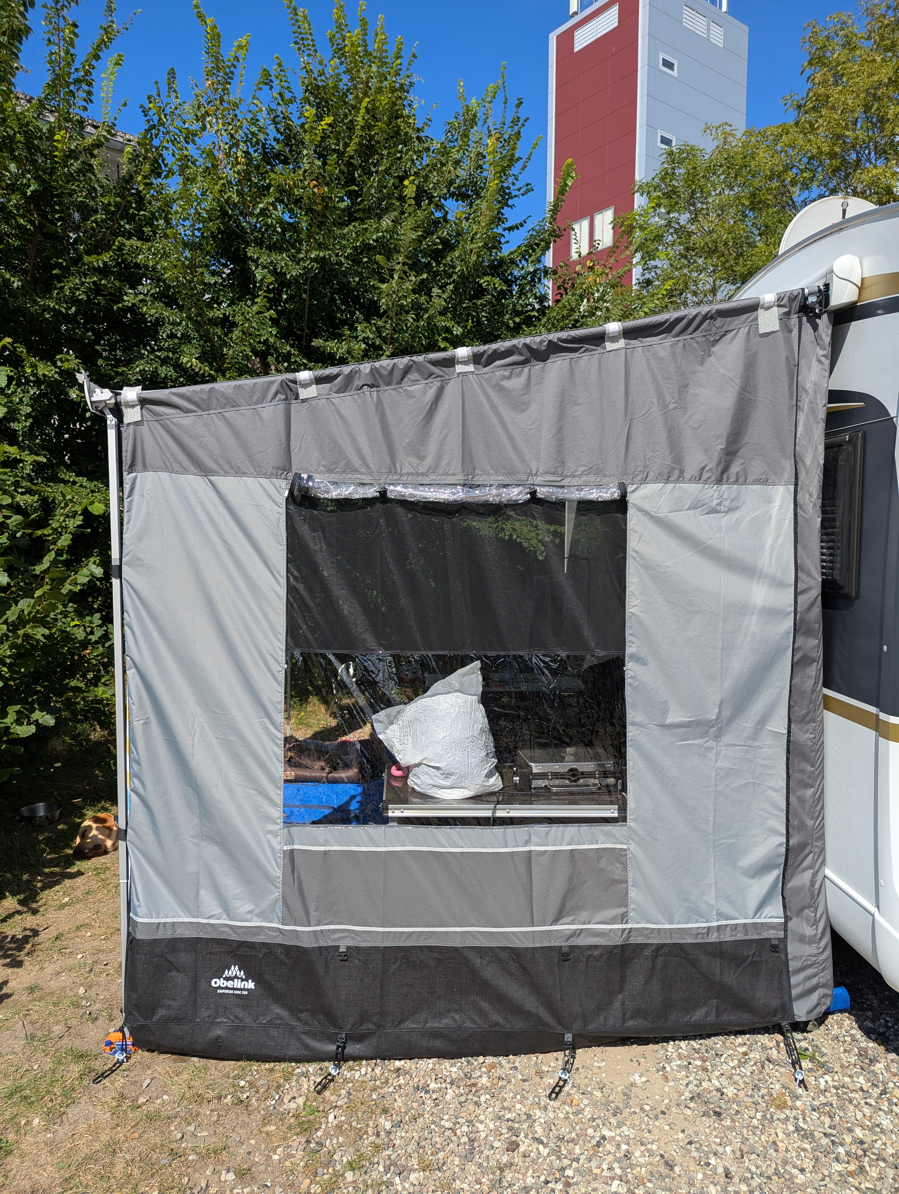 Das Obelink Emperor Markisenvorzelt 330 ist ein zusammengestelltes Set, das für die meisten gängigen Markisentypen wie Thule Omnistor 6300, 5200 und 1200 sowie Fiamma F80S, F45S und Caravanstore XL mit einer Länge von 350 oder 360 cm geeignet ist. Dieses Markisenzelt passt auch zu verschiedenen älteren Markisenmodellen. Bitte lesen Sie die technischen Merkmale des Produktes, um herauszufinden, ob dies auch für Ihre Markise gilt.