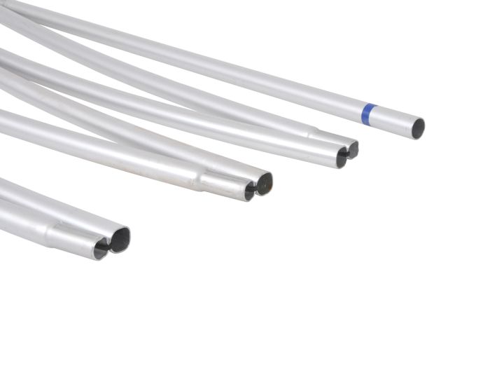 Dies ist die Aluminium-Stange mit der blauen Markierung für das Tunnelzelt Obelink Familia 6.