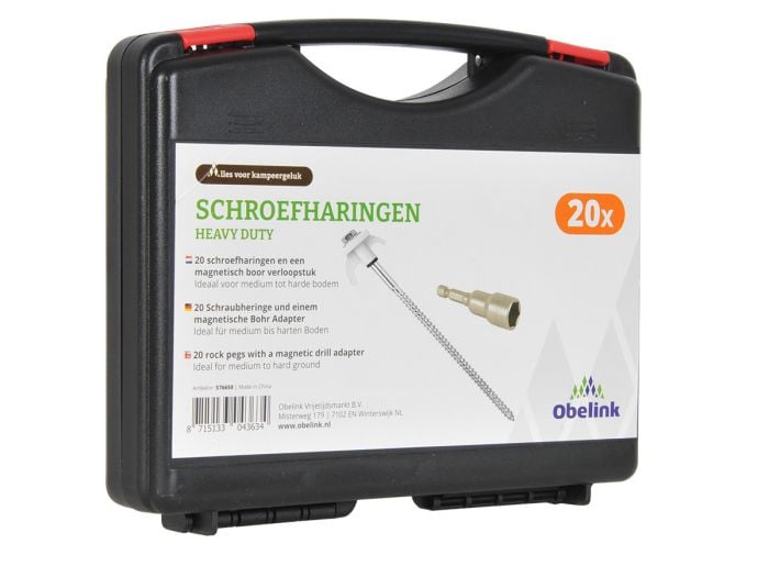 Das Obelink Heavy Duty Schraubheringeset ist ein besonders praktisches Set mit 20 stabilen Heringen aus Stahl.