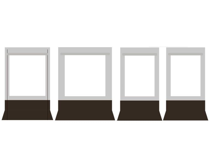 Da die komplette Vorderwand aus vier separaten Elementen besteht, können Sie wählen, welches Element wo angebracht wird. Sie können das Türelement links, rechts oder in der Mitte anbringen.