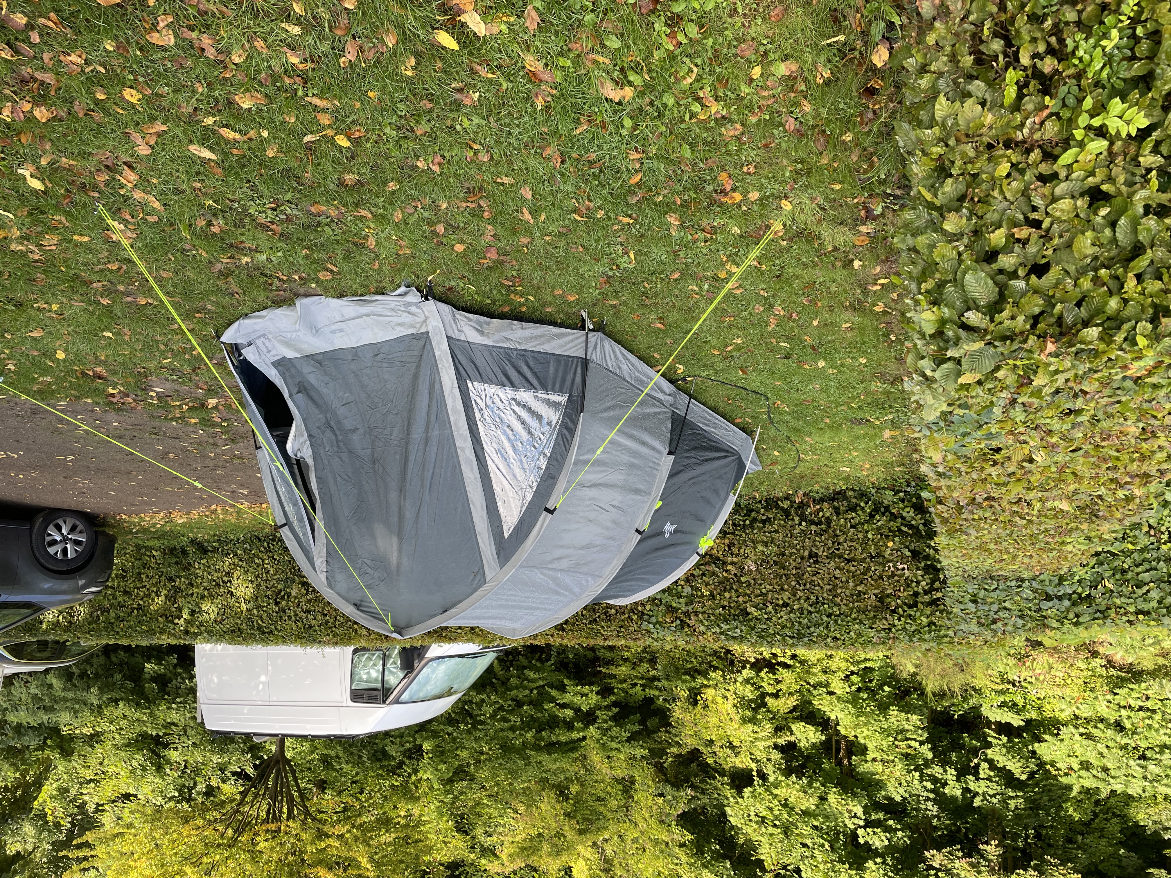 Dieses (Vor-)Zelt oder diese Markise ist mit aufblasbaren Luftschläuchen anstelle von Zeltstangen ausgestattet