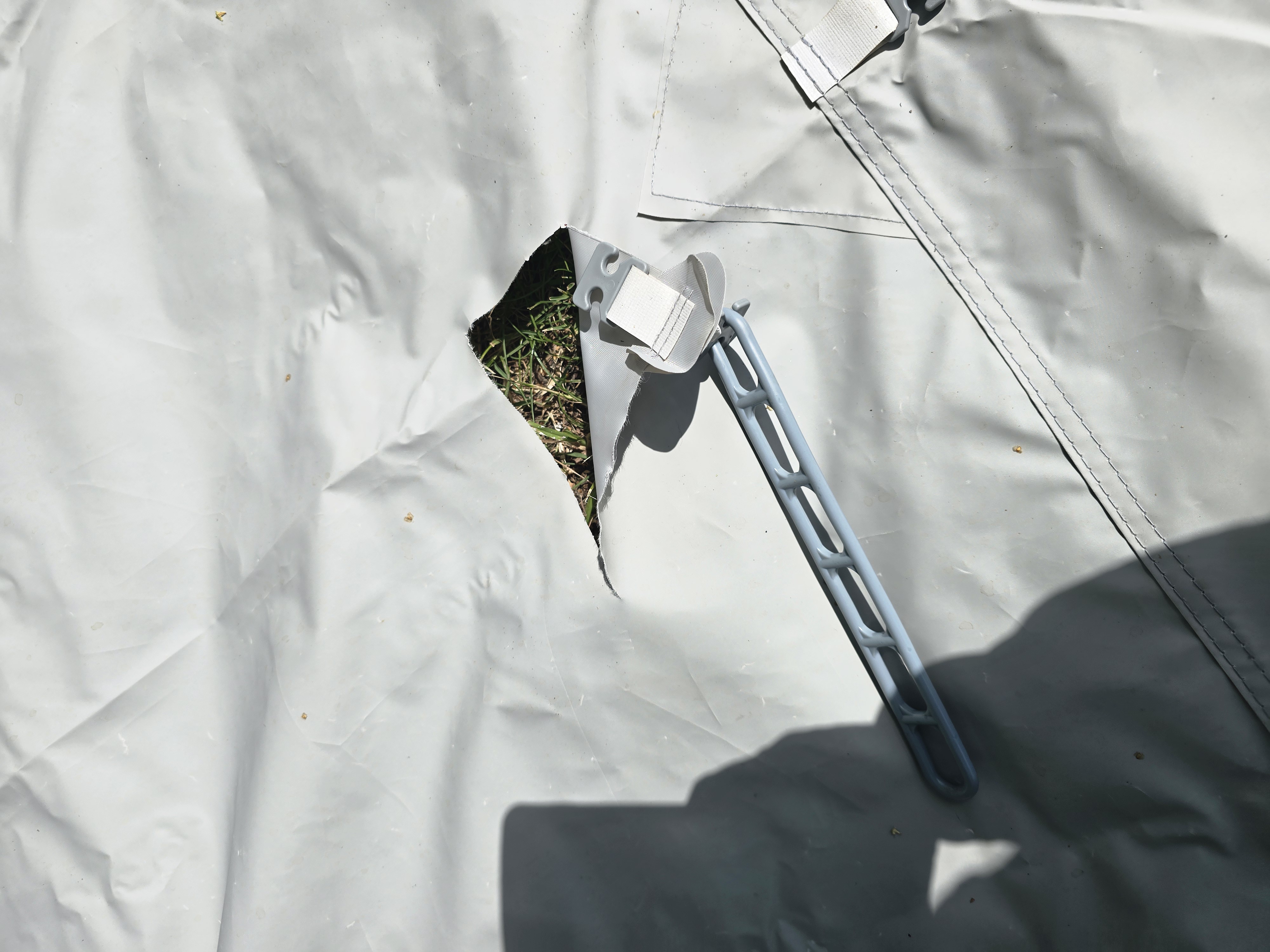 Bei einem Zelt mit doppeltem Faulstreifen klappen Sie für zusätzlichen Schutz einen Faulstreifen nach innen und einen nach außen.