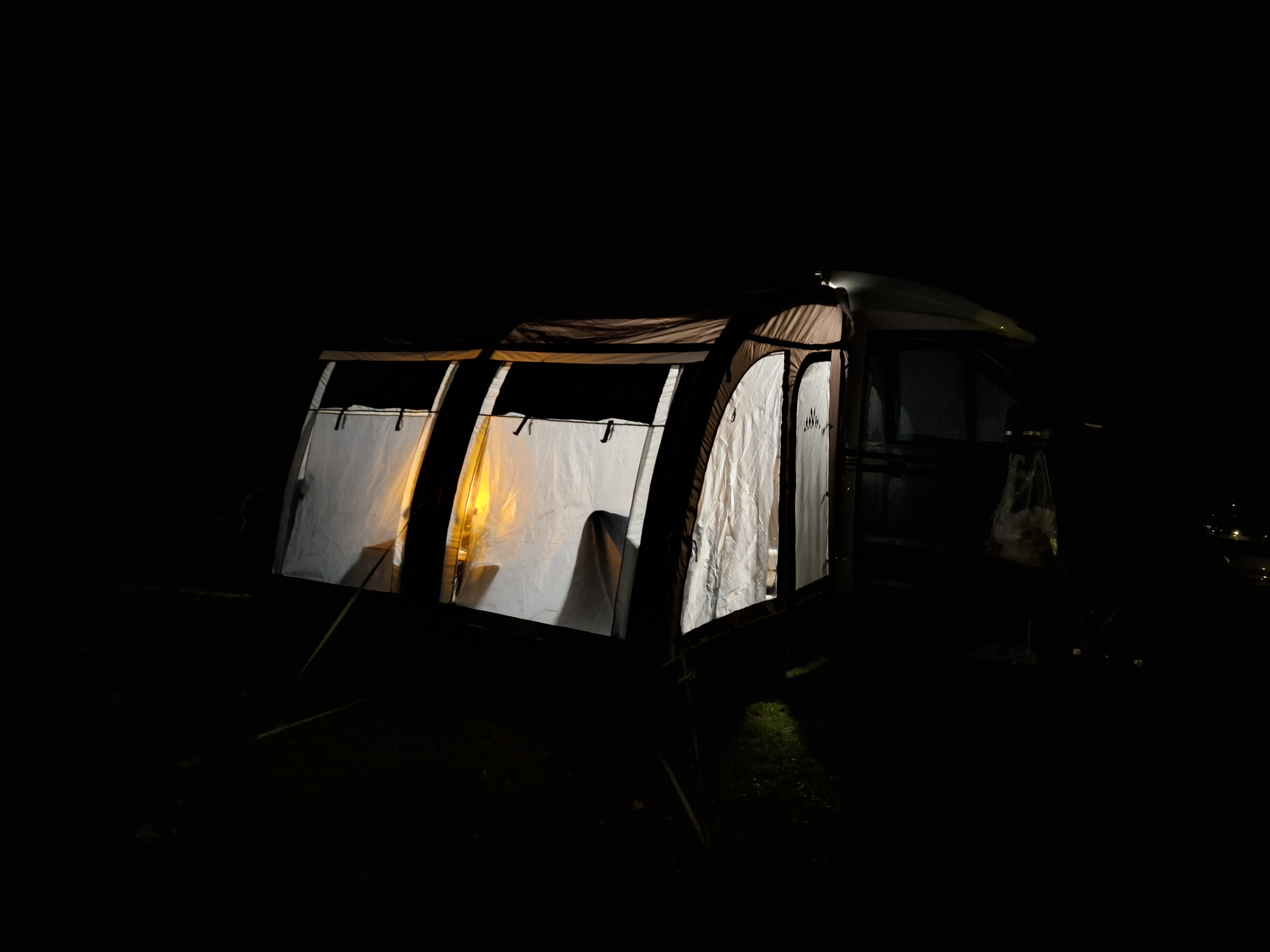 Dieses (Vor-)Zelt oder diese Markise ist mit aufblasbaren Luftschläuchen anstelle von Zeltstangen ausgestattet