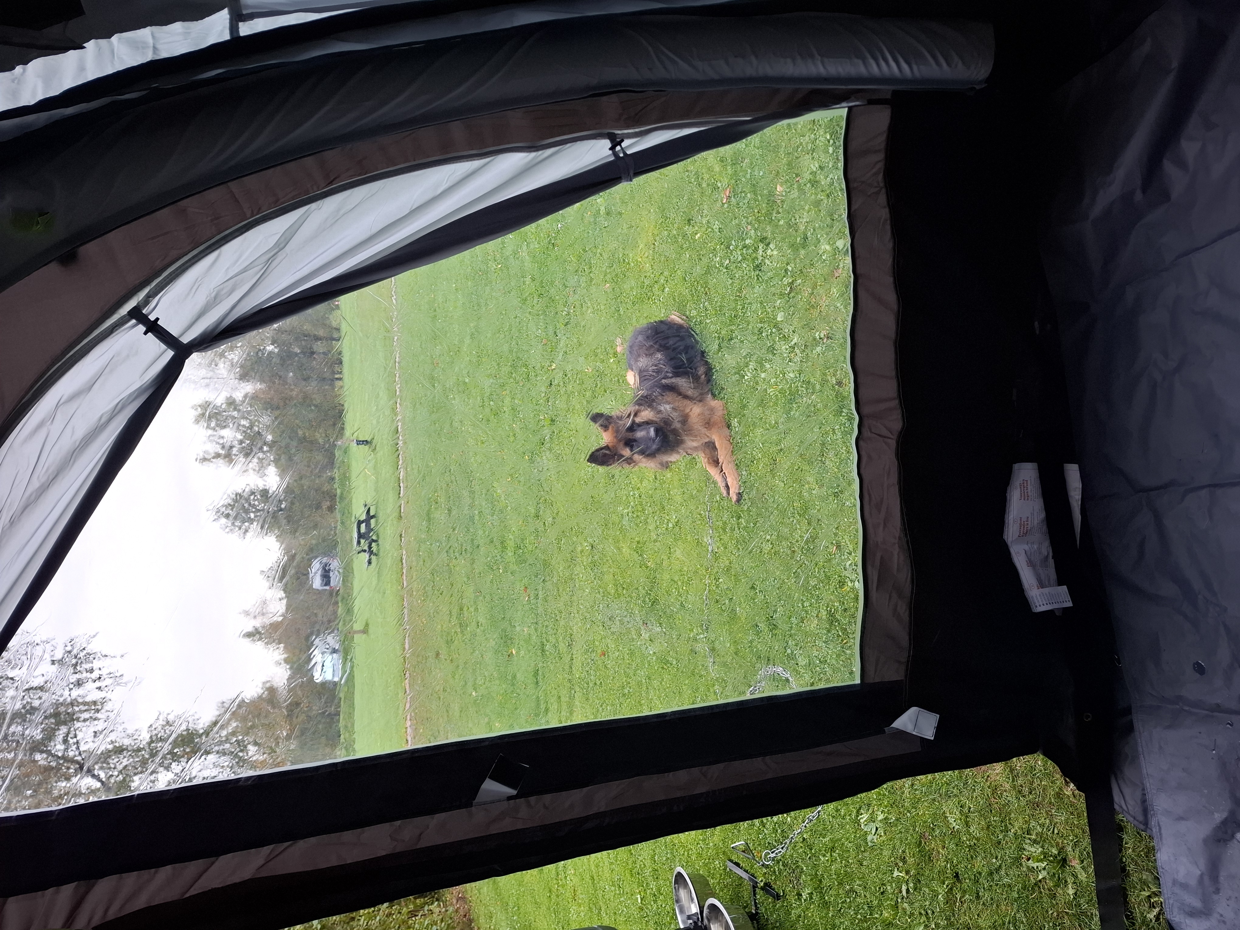 Die linke Seitenwand, wenn man das Zelt von vorne betrachtet.