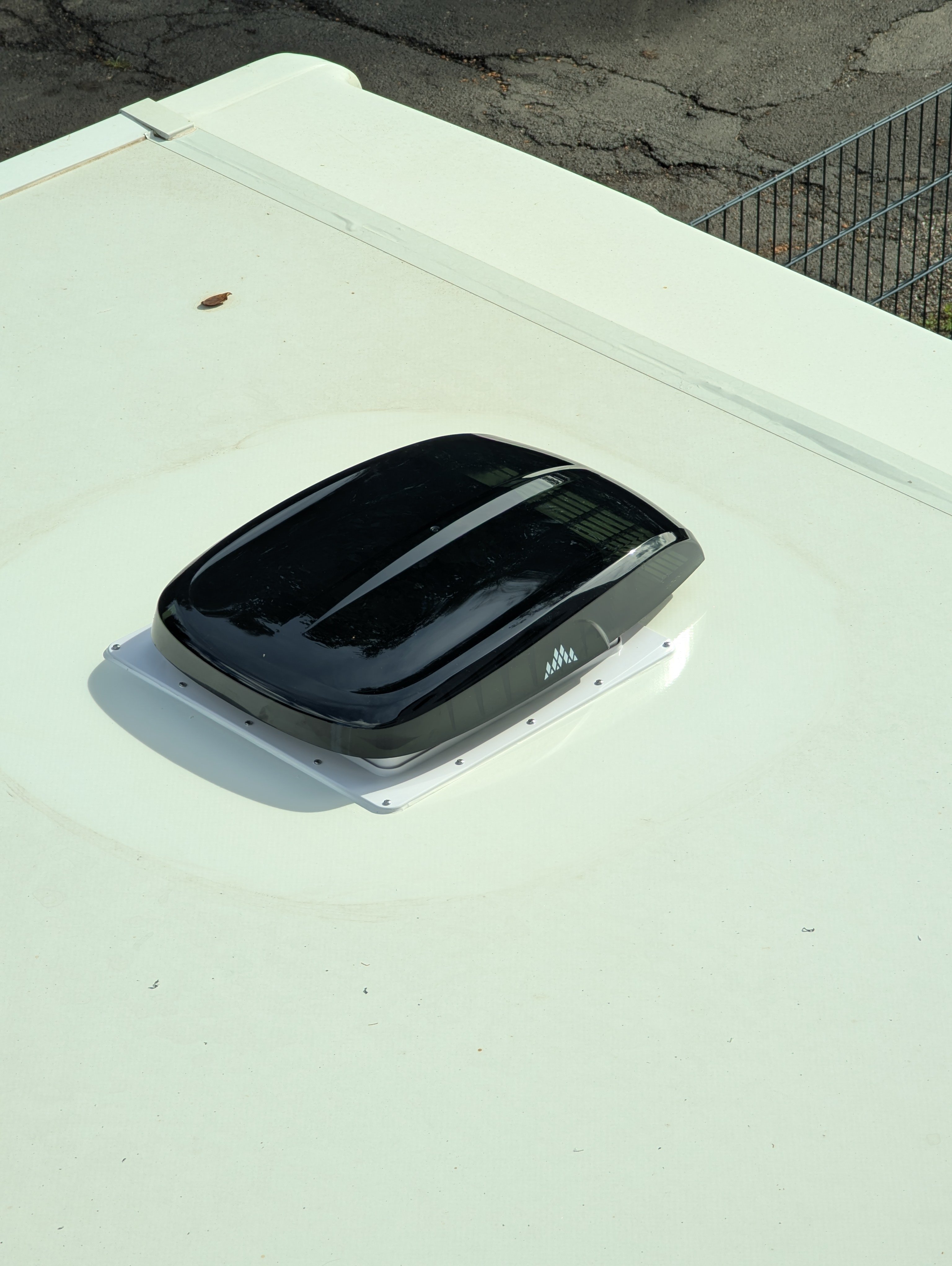 Für den Einbau ist eine 400 x 400 mm große Aussparung im Dach erforderlich, wobei für eine stabile Montage eine Dachstärke von 27 bis 80 mm erforderlich ist. Der äußere Rahmen wird mit Kleb- und Dichtstoff auf dem Dach befestigt, danach werden der Ventilator und der innere Rahmen installiert. Der elektrische Anschluss erfordert eine 12-V-Stromversorgung, wobei es wichtig ist, die Kabel korrekt anzuschließen.