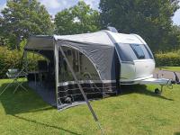 Das Obelink Panorama Grey 240 Sonnenvordach Größe 8 hat eine Tiefe von 240 cm und ist für Wohnwagen mit einem Umlaufmaß von 831 bis 855 cm geeignet.