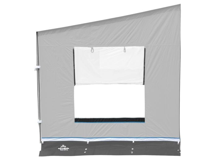 Die Obelink Queen Seitenwand Fiamma Caravanstore rechts ist eine komplette rechte Seitenwand für die Fiamma Caravanstore Sackmarkise mit 225 cm Ausfall. Die Seitenwand ist aus 300D-Polyester und hat einen Faulstreifen aus PVC. Dieser PVC-Streifen erleichtert Ihnen das Sauberhalten der Seitenwand, und verlängert die Lebensdauer. Das Belüftungsgitter befindet sich in der oberen Fensterhälfte, und kann mit einer transparenten Abdeckklappe verschlossen werden.