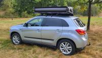 Das Obelink Skyfold 160 ist ein geräumiges Dachzelt für zwei Personen mit einem überdachten Eingangsbereich.