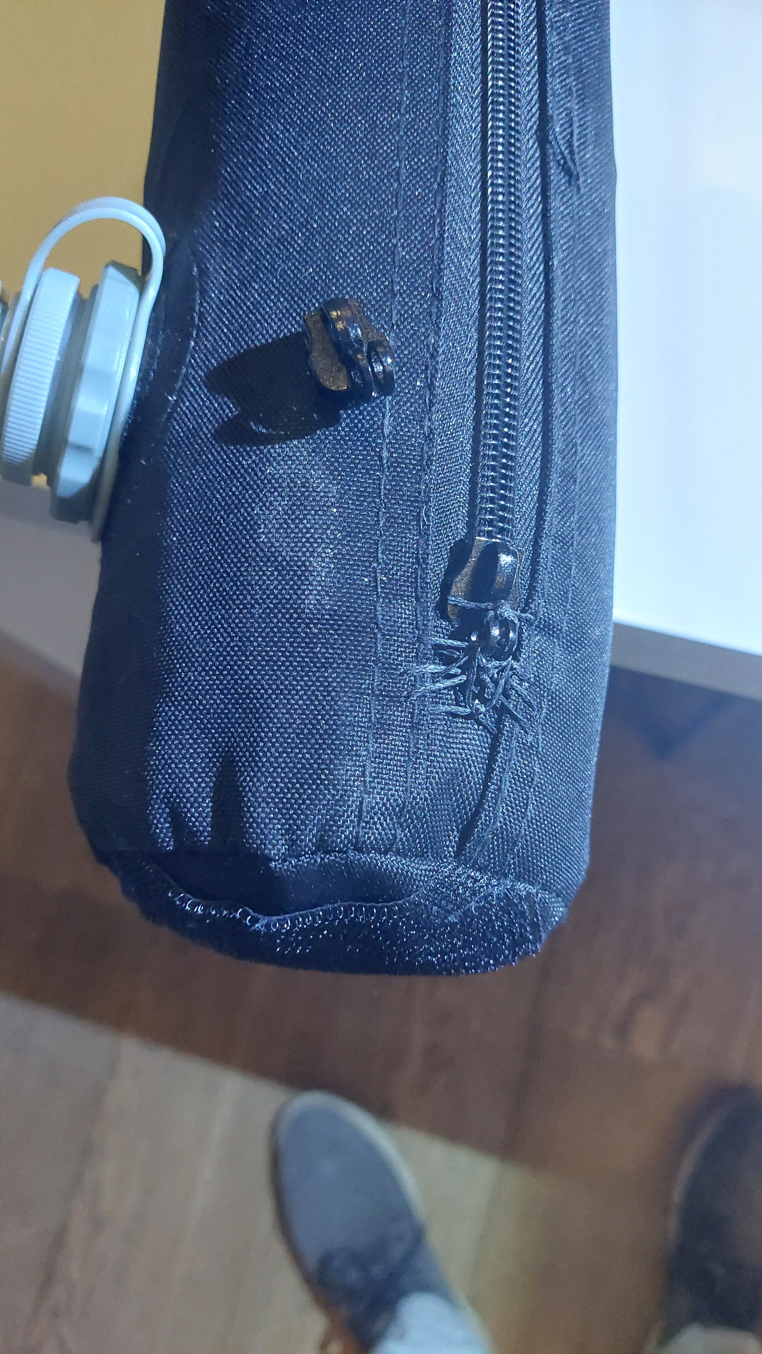 - zeer ontevreden over kwaliteit van de ritsende ritsen laten los zodat de binnenbuis naar buiten komt zie foto de rits met garen aan het eindpunt vast gezet (slechte ritsen)