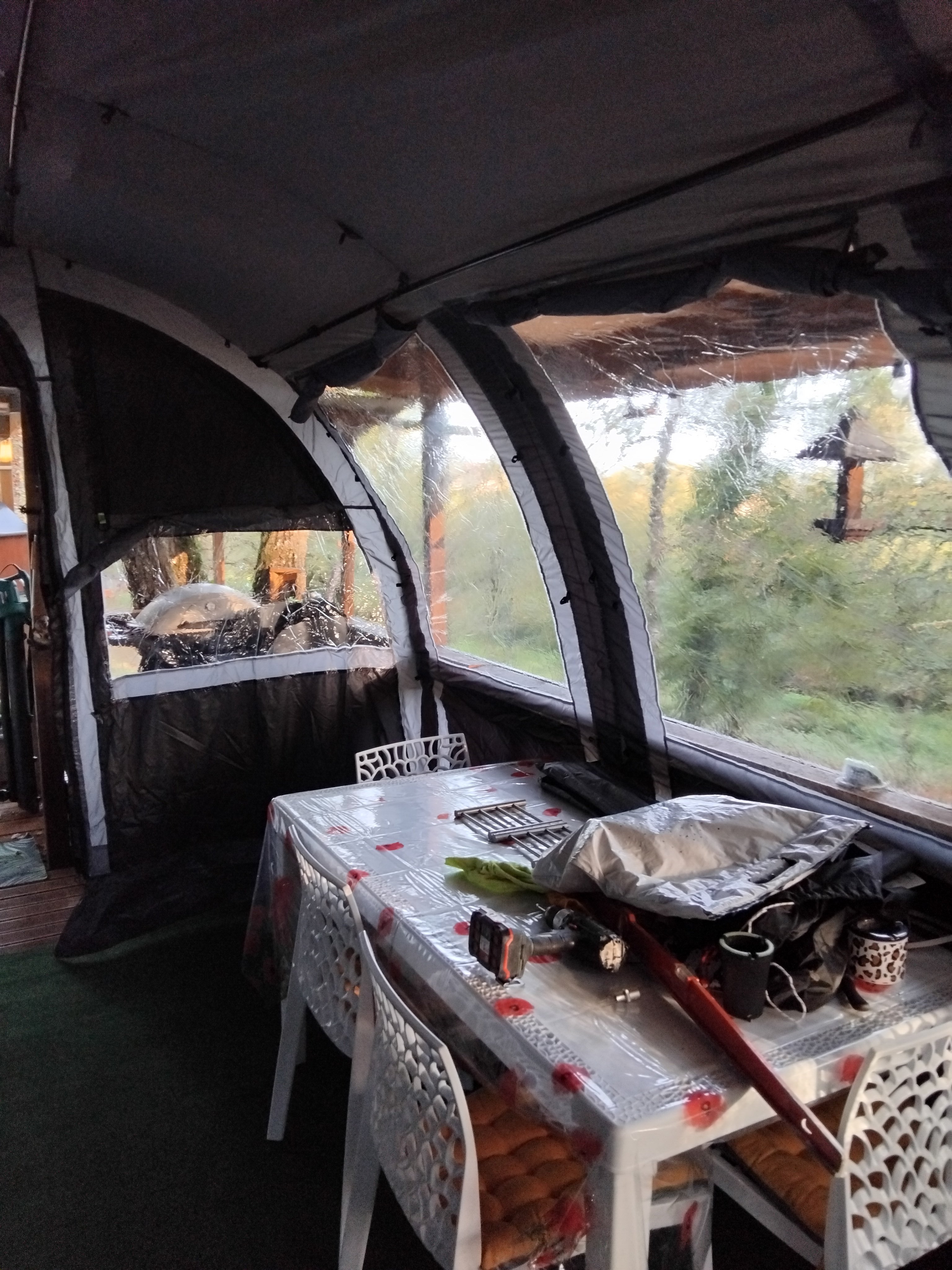 Dieses (Vor-)Zelt oder diese Markise ist mit aufblasbaren Luftschläuchen anstelle von Zeltstangen ausgestattet