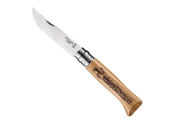 Den besonderen Charakter dieser Serie unterstreicht der Griff aus Eichenholz. Der aus einem Stück gefertigte Griff wird aus getrocknetem, lang gelagerten Buchen-Hartholz gefertigt und durch eine Speziallackierung vor Feuchtigkeit geschützt. Dem Thema der Kollektion entsprechend sind bei diesem Modell auf dem Griff mittels Laser eingravierte Motive verschiedener Tiere in der freien Natur dargestellt. Das bewährte Virobloc-System arretiert die Klinge zuverlässig in geöffnetem und geschlossenem Zustand.Das französische Unternehmen Opinel befindet sich seit der Gründung 1890 im Familienbesitz - die berühmte Ikone der französischen Handwerkskunst steht bis heute mit Ihrem Namen für außergewöhnliche Langlebigkeit und hohe Qualität.