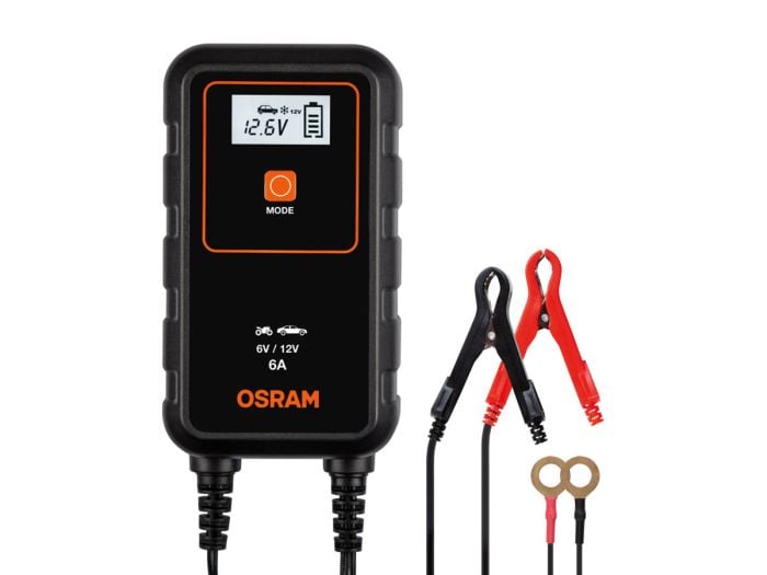 Der OSRAM BatteryCharger 906 ist ein intelligentes 6A-Ladegerät und Batterieerhaltungsgerät für 6V- und 12V-Fahrzeuge, einschließlich der meisten Fahrzeuge und Transporter. 7-stufiger Ladezyklus auf Knopfdruck für Lithium-Batterien, mit nur einem 9-stufigen Zyklus für Blei-Säure/AGM-Batterien. Mit digitaler Anzeige zur Erleichterung des Ladevorgangs und einer Reihe von Sicherheitsfunktionen wie Verpolungs- und Kurzschlussschutz. Sie können sicher sein, dass das Ladegerät Ihre Autobatterie wartet, da es automatisch in den Langzeitwartungsmodus wechselt, wenn die Autobatterie vollständig geladen ist.
