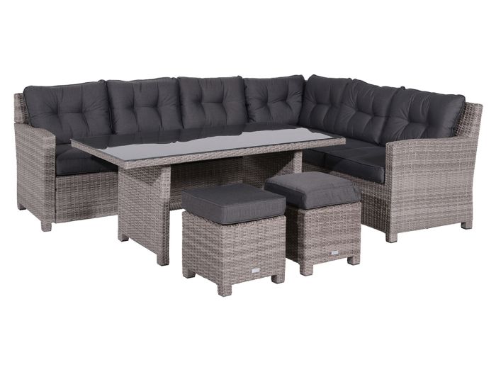 Gemütlich mit allen am Tisch essen oder gemütliches Faulenzen? Mit dem Blue Dining ist dies alles möglich. Die Couch ist bequem, um sich den ganzen Abend zu entspannen, aber dank des hohen Tisches ist dieses Set auch zum Essen hervorragend geeignet.