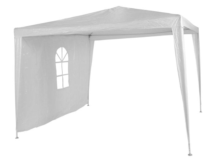 Wenn Sie Ihr Partyzelt gerne etwas wetterbeständiger machen wollen, brauchen Sie die Budget Pavillon Seitenwand. Mit dieser Seitenwand kann Ihre Party auch bei Regen stattfinden. Sie können diese Seitenwand einfach am Rahmen Ihres Partyzeltes befestigen. Ein praktisches und schönes Detail ist das plastik Fenster.