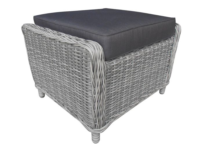 Der Outdoor Feelings Flamingo Hocker ist ein gewebter Fußhocker mit einem Aluminiumrahmen in der Farbe off white.