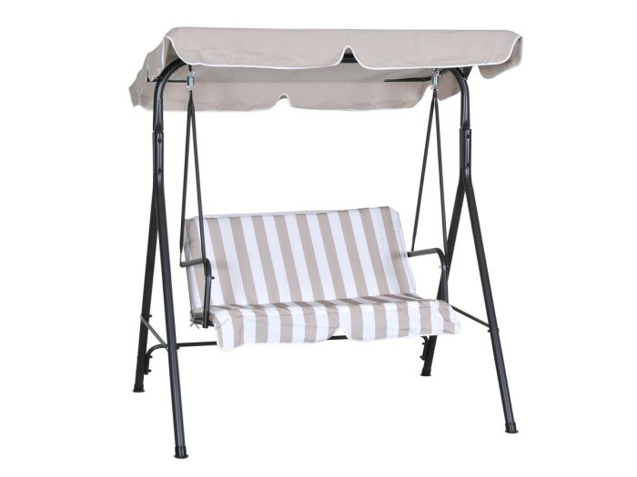 Der Rahmen besteht aus Aluminium und die Schaukel ist mit einem komfortablen Kissen ausgestattet.