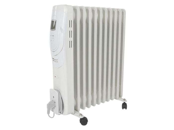 Dieser Ölradiator von Perel eignet sich ideal als Zusatzheizung. Das Gerät hat eine Leistung von 2500 W und ist mit 11 Rippen, 3 Heizstufen, ein LCD-Display, einen Timer und einem Thermostat ausgestattet. Vorhanden sind auch 4 Rollen, ein Tragegriff und ein Kabelhalter, an der das Kabel aufgewickelt werden kann. Da der mit Öl befüllte Radiator mobil ist, kann er bequem und schnell überall dort platziert werden, wo Wärme benötigt wird. Das Gerät lässt sich einfach über die Steuereinheit bedienen. Als Wärmespeichermedium verwendet die Standheizung Öl, das sich sehr schnell erhitzt. Die gespeicherte Wärme wird gleichmäßig an den Raum abgegeben, auch lange nachdem der Ölkonvektor abgeschaltet wurde. Der Überhitzungsschutz sorgt dafür, dass sich das Gerät bei Überhitzung automatisch abschaltet. Die Kippsicherung gewährleistet maximale Sicherheit durch automatische Abschaltung beim Umkippen.