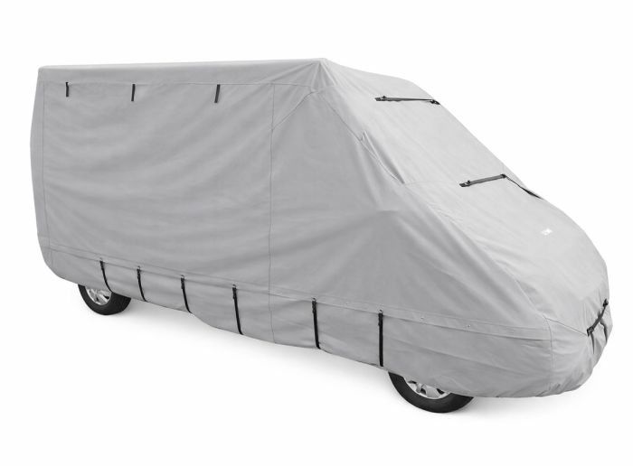 Die Abdeckung besteht aus starkem, nicht gewebtem, wasserdichtem Polypropylen und verfügt über eine 4-lagige Konstruktion. Dadurch ist sie feuchtigkeitsregulierend und sorgt dafür, dass Feuchtigkeit auf natürliche Weise verdunsten kann. So bleibt Ihr Camper besser vor Schimmelbildung und Wettereinflüssen geschützt.