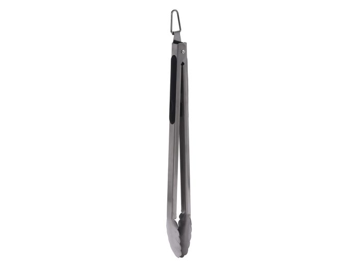 Die Grillzange hat eine Größe von 43 cm und kann ganz einfach an der Schlaufe aufgehangen werden.