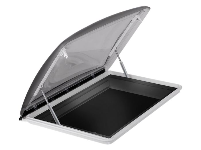 Dank der aerodynamisch geformten Glaskuppel reduziert sich die Höhe der Dachluke um fast 50 % auf nur noch 72 mm. Dadurch wird auch der Geräuschpegel während der Fahrt deutlich reduziert. Auch die Dachluke ist leicht. Das Modell besteht aus einem UV-beständigen ASA- und PMMA-Material. Darüber hinaus verfügt es über ein effektives Wasserableitungssystem, um zu verhindern, dass Wasser in das Fahrzeug eindringt. Auf diese Weise können Sie sich über eine stromlinienförmige Dachluke mit optimaler Geräuschreduzierung freuen, die Ihre Fahrt leiser und effizienter macht. Der RoofSTAR 7 ist für eine Dachluke mit den Maßen 50 x 70 cm geeignet.