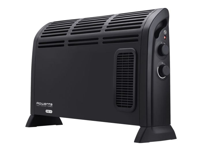 Der Rowenta CO3035 Elektroheizer verfügt über zwei Leistungsstufen: 1200 Watt für Dauerbetrieb und 2400 Watt für schnelles, kraftvolles Heizen. Er eignet sich für mittelgroße Räume wie Arbeits- oder Schlafzimmer.