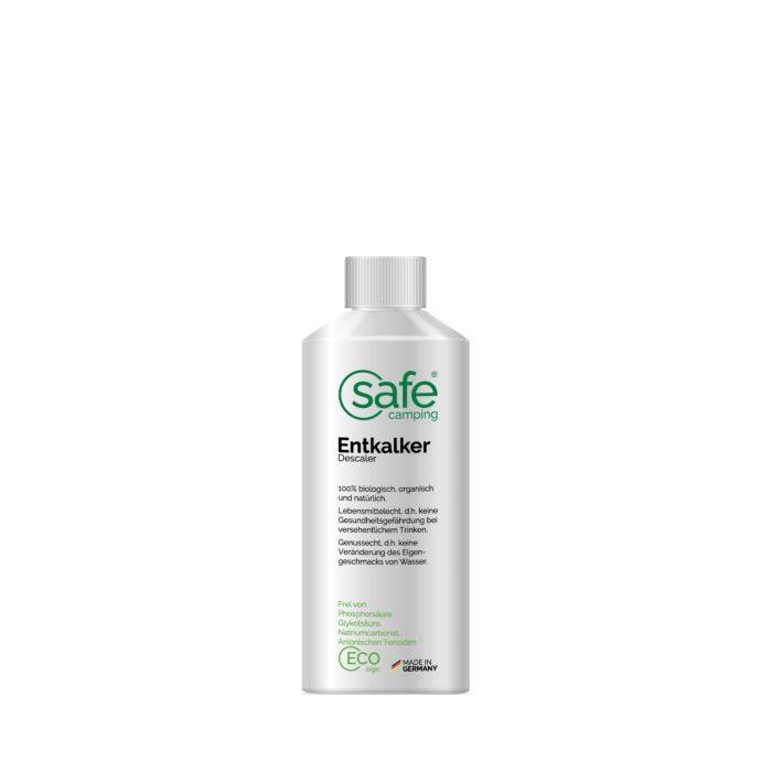 Der SAFE CAMPING Entkalker ist ideal für Wohnmobil/-wagen. Das komplette Frischwassersystem (Tanks, Leitungen), Boiler sowie auch die Pumpe erhalten durch eine regelmäßige Entkalkung einen Schutz vor Kalkablagerungen. Somit verlängert sich auch die Lebensdauer aller Komponenten. Der Entkalker ist auch für Haushaltsgeräte wie Kaffeemaschinen, Wasserkocher usw. geeignet. Er beseitigt zudem unangenehme Gerüche. 100% organisch und biologisch abbaubar, insbesondere frei von Chlor, scharfen Säuren und Basen sowie harten quarternären Verbindungen. Sehr schnelles Reinigungsergebnis.
